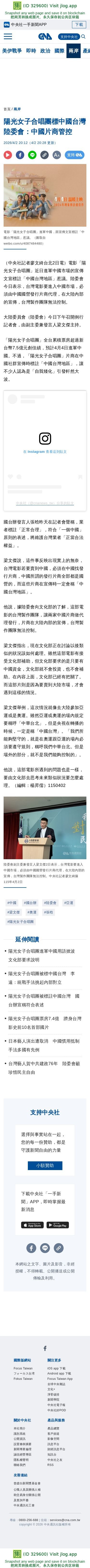 陽光女子合唱團標中國台灣 陸委會:中國片商管控 | 兩岸 | 中央社 CNA