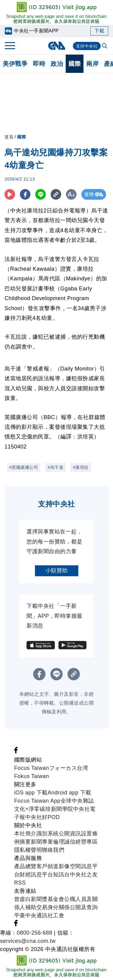 烏干達幼兒園爆持刀攻擊案 4幼童身亡 | 國際 | 中央社 CNA