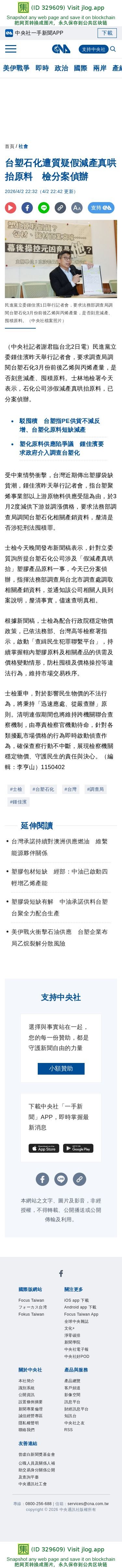 台塑石化遭質疑假減產真哄抬原料 檢分案偵辦 | 社會 | 中央社 CNA