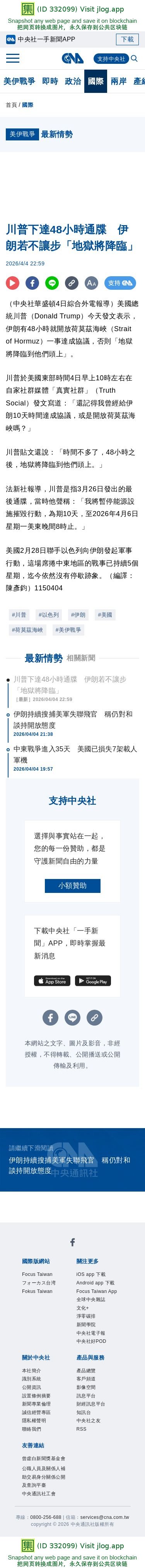 川普下達48小時通牒 伊朗若不讓步「地獄將降臨」 | 國際 | 中央社 CNA