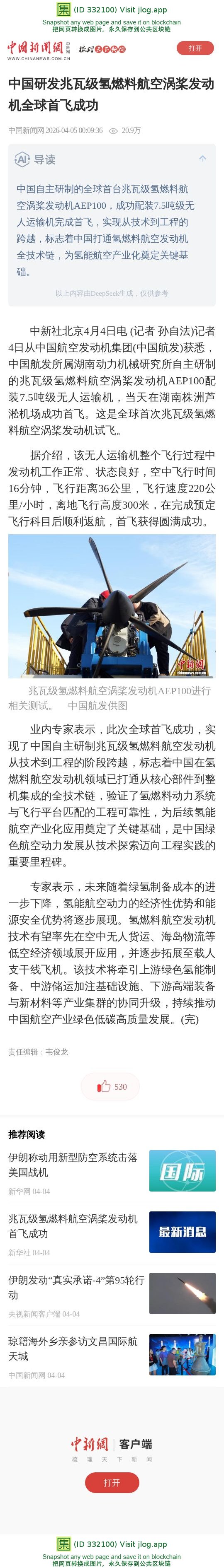 中国研发兆瓦级氢燃料航空涡桨发动机全球首飞成功