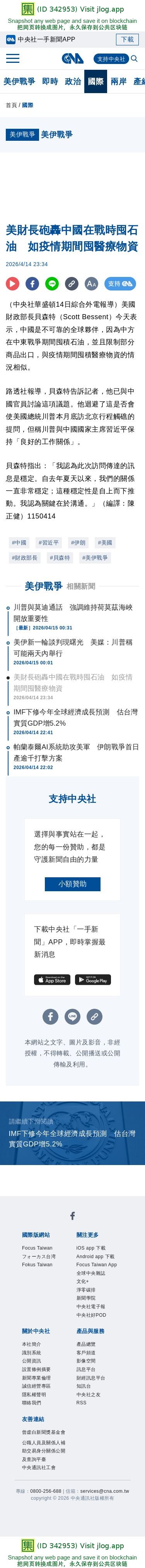 美財長砲轟中國在戰時囤石油 如疫情期間囤醫療物資 | 國際 | 中央社 CNA