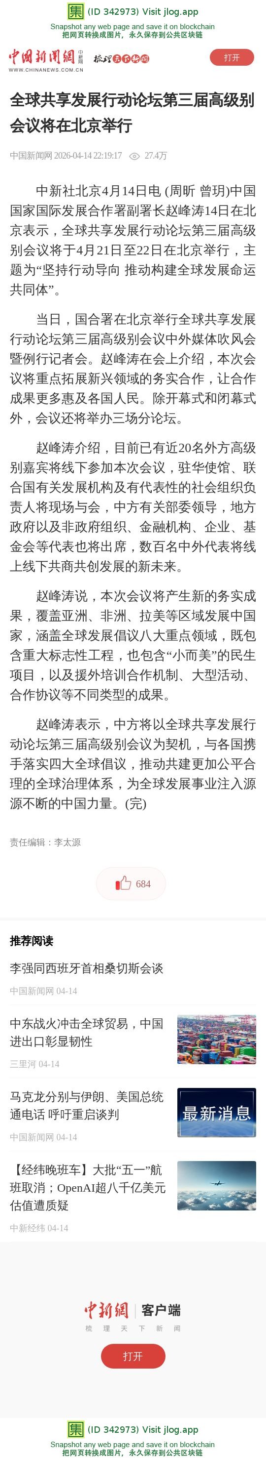 全球共享发展行动论坛第三届高级别会议将在北京举行