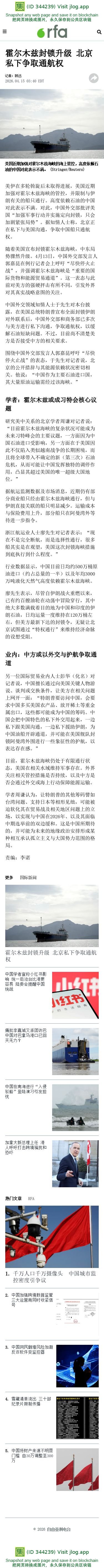 霍尔木兹封锁升级 北京私下争取通航权 – 普通话主页