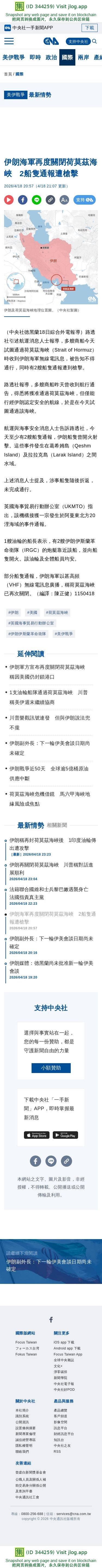 伊朗海軍再度關閉荷莫茲海峽 2船隻通報遭槍擊 | 國際 | 中央社 CNA