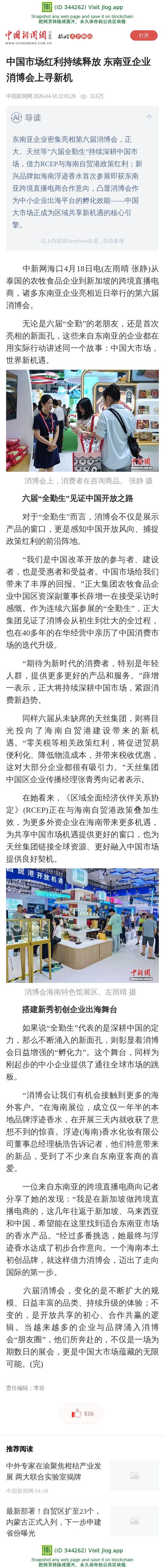 中国市场红利持续释放 东南亚企业消博会上寻新机