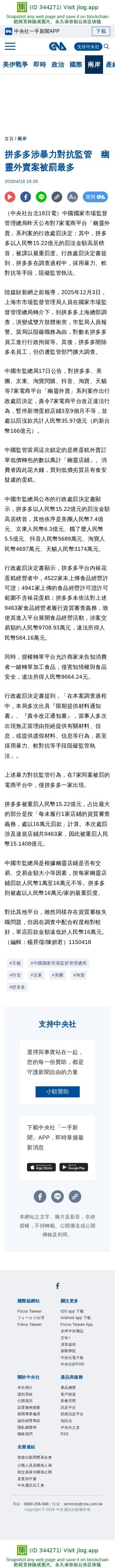 拼多多涉暴力對抗監管 幽靈外賣案被罰最多 | 兩岸 | 中央社 CNA