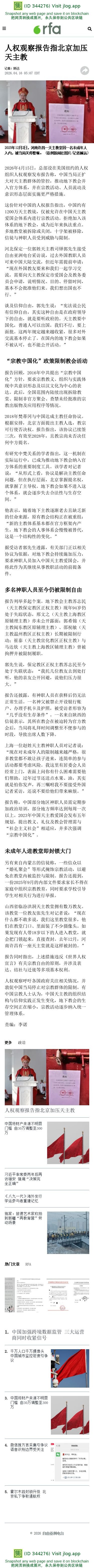 人权观察报告指北京加压天主教 – 普通话主页