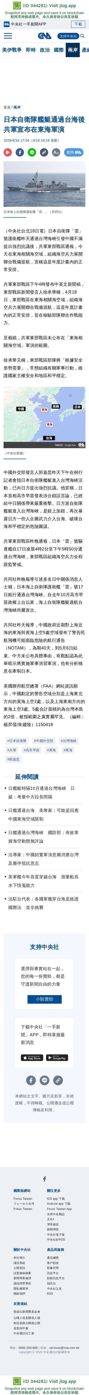 日本自衛隊艦艇通過台海後 共軍宣布在東海軍演 | 兩岸 | 中央社 CNA