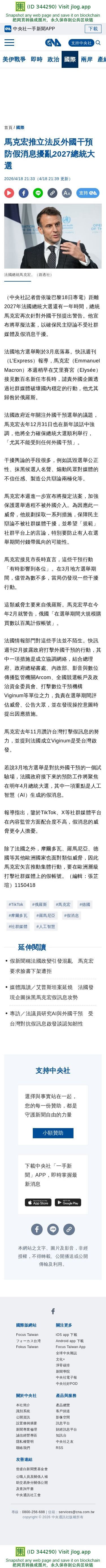 馬克宏推立法反外國干預 防假消息擾亂2027總統大選 | 國際 | 中央社 CNA