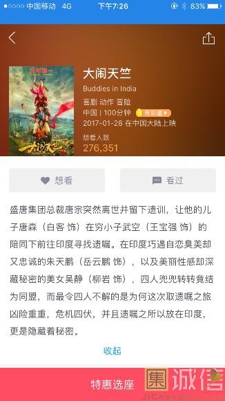明儿就是大年初一了,找不到玩的不妨去看看电影。今年贺岁档电影全在下面了,仔细看看,总有你喜欢的款。 《西游伏妖篇》 上映日期:2017年1月28日(大年初一) 周星驰作为“喜剧之王”,无论是普通观众基础还是影迷基础,都强大得可怕,他的名字就是华语电影最强IP。 这次周星驰监制的《西游伏妖篇》由“老爷”徐克执导,可以说是强强联手,拍的又是家喻户晓的“西游”故事,用的还是年轻人心目中最炙手可热的偶像演员们,岂有不卖座之理?!光是《西游伏妖篇》的海报都透着一股浓浓的喜庆和大卖的气质,相信大家都想看看,当星爷遇见老爷,脑洞会有多大? 去年春节档,星爷的《美人鱼》创造了33亿的票房神话,这一逆天纪录至今还没有影片能打破。对于今年同样档期的《西游伏妖篇》来说,唯一的悬念就是,今年票补减退,影片品质多不佳,导致大盘形势不如去年,星爷与老爷的携手,能不能打破今年大导演新作纷纷口碑扑街的“魔咒”,打破星爷自己的纪录? 《大闹天竺》 上映日期:2017年1月28日(大年初一) 王宝强的群众基础绝对不可小觑,至少当他的婚姻问题成为街谈巷议的话题时,他主演的喜剧新片《大闹天竺》也同时获得高度的捆绑关注。 《大闹天竺》的故事讲述的是王宝强饰演的“武空”、白客饰演的“唐森”、岳云鹏饰演的“朱天鹏”和柳岩饰演的“吴静”四人因缘际会齐聚印度,历经波折,最终取得“真经”的故事。有“西游记”的“变调”IP基础,有类似《泰囧》式的“印囧”设定,也有王宝强特有的功夫“笑果”。 《乘风破浪》 上映日期:2017年1月28日(大年初一) 《乘风破浪》讲的是小镇青年阿浪认为父亲从未理解过自己的职业与生活,一次机缘巧合,他见证并经历了父亲当年传奇而有趣的一面。演员阵容也是云集了当下很受年轻人喜欢的邓超、彭于晏、董子健、赵丽颖等等。根据定档海报来猜测,彭于晏和赵丽颖在片中很可能饰演的是邓超的父母,上演一段类似《大鱼》+《新难兄难弟》的故事,有穿越元素,儿子穿越回父亲的年代,跟父亲一起经历了打架、泡妞的兄弟情,核心还是两代人和解的亲情线。 韩寒的第一部电影《后会无期》在2014年暑期档曾斩获6.3亿的票房成绩,这次的《乘风破浪》来到了一个机会更大的档期,能否再度凭借韩寒这个自媒体品牌续写票房佳绩令人好奇。 《功夫瑜伽》 上映日期:2017年1月28日(大年初一) 对于成龙的影迷来说,只要能看到大哥继续在大银幕上演出他独具一格的动作喜剧,就能满足,尤其在过年期间,和谐、健康、热热闹闹的成龙品牌属性,本身就是一种号召力,也因此延续大哥画风的春节档电影《功夫瑜伽》会是非常适合合家欢的观影选择。 成龙这些年的动作喜剧也会习惯性地提携后辈,捎带几个小鲜肉演员,这次在《功夫瑜伽》里与大哥一起冒险的李治廷和张艺兴两位年轻演员也有不少年轻粉丝。 《熊出没·奇幻空间》 上映日期:2017年1月28日(大年初一) 《熊出没》系列动画,那是妥妥的大IP,前3部的累积票房已经超过8亿,是继《喜羊羊》之后中国内地最成功的动画系列电影。这次的第4部大电影故事还是围绕森林展开,讲述熊大、熊二和光头强与金鹿角守护者——鹿族女孩协力保护金鹿角,击垮反派,最终让森林复苏的故事。 目前定档大年初一的电影,基本都是给成年人看的喜剧,《熊出没4》以类型区分,受众明确直击“熊孩子”,势必能在春节档占据一定的市场份额,票房前景还是相当可观的。 打赏 这篇文章被编辑了 1 次. 最近一次更新是在 2017/01/28 06:55:51 打赏(1) | |