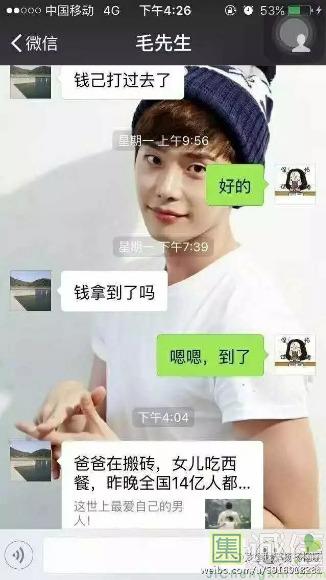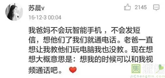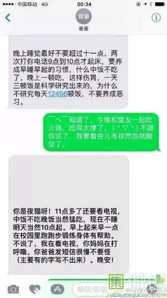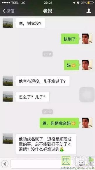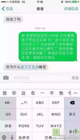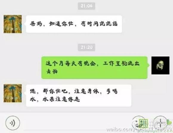 在生活中,手机聊天几乎已经成为所有人沟通的方式,但是有这样一种聊天,不是和兄弟闺蜜聊天时的口无遮拦,也不是随时都可能上演的斗图大战,而是一股清流,直入人心,令人泪目。 ![]() ![]() ![]() 和爸妈聊天的你有时是不是也会突然语塞 心里只有一句 “我还能说什么?” ![]() 在如今智能机普及的年代,父辈们大都也开始学着使用微信、微博、QQ、网购……一件不落。但是!真正玩儿得溜的也只是极少数,由于存在代沟问题,爸妈们还不是很能融入进年轻人的网络交流世界。 所以,就出现了以下几种“聊天截图”: No.1 开始怀疑是否亲生 ![]() ![]() ![]() ![]() ![]() 直接不认得亲闺女2333 ![]() 很多孩子被怼大都因为……钱 ![]() 单身就活该被怼?? ![]() ![]() 孩子不可貌相啊!![]() ![]() ![]() (来自微博网友sundanrui) ![]() 我还能说什么?? ![]() ![]() ![]() 就是怼你无需道理 ![]() (来自微博网友“权倾”) No.2 您真的没明白我的意思 除了60、70后不懂的“伤痕青春”和“火星语”还有一部分是表情包的锅 青年人你来我往不亦乐乎时 在爸妈的眼里只有 No.3 一家三口我最多余 “我对你有一点……扎心”![]() 你以为你单身回到家庭的圈子就不用吃狗粮了? Too young ![]() 有一种恩爱是躲不过的 No.4 姜还是老的辣 ![]() 你以为表情包就你会使? 对方不想和你说话并向你扔了一堆表情包 ![]() ![]() ![]() 什么蛛丝马迹都逃不过亲爸亲妈的火眼金睛 ![]() “不好意思你爸(妈)我不比你少机灵” 什么梗啊尽管来保证无缝对接还顺带分分钟怼你一脸 ![]() ![]() ![]() 可是,让我泪目的还是你们 因为最懂我的,还是你们 ![]() 科比退役 只上过小学一年级的父亲不会用微信给儿子发的短信 ![]() 他们,对你永远不厌其烦 ![]() (来自微博网友“TTTiger”) ![]() 有时候,你懂,比什么都重要 ![]() (来自微博网友“十二月的洪流”) ![]() ![]() 其实他们要的特别少 有时你的一句话就能让他们无比开心 ![]() 其实能见到你,有你在 就什么都好了 ![]() (截自微博网友“屋叁”的评论) 一个才上大一的妹子与父亲的对话 ![]() ![]() 你人生的路 其实都是他们一步不落地陪你一起 会不会智能机、通过什么方式交流 其实都无所谓 毕竟他们翻山越岭爱你的心都是一样的 ![]() (截自微博网友“苏晨v”的评论) 火星语、颜文字、表情包都只是为了离你们更近一点,啼笑皆非的对话不过由于快半百或已半百的他们又重新如幼儿蹒跚学步般,跌跌撞撞地,只为尽力融入你的世界,和他们心尖儿上的孩子,拉近距离。通过语言的沟通减少或消除空间距离上可能带来的矛盾甚至隔阂。 你好笑他们不懂你的话你的表情包时,可能没看见的是文字背后他们憨笑着微红的脸;你惊讶斗图竟然斗他们不过时,可能没看见的是屏幕另一端他们得意又放松的笑脸;而一切的嬉笑怒骂背后,最本真的,是爸妈慈爱牵挂的目光。 “和爸妈的聊天截图”这一独特另类的存在其实是最好懂的,它没什么复杂晦涩的东西可挖,它千言万语只回归一个本质—— 就是爱啊。 ![]() ![]() ![]() (来自微博) 你不知道 即使这样幼稚的和你对话 他们也乐此不疲 ![]() 总看你抱着手机 不如刚好 多和他们说说话吧 有你和爸妈的聊天截图 来源:微博截图 网络