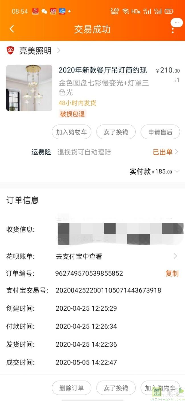 发货物流是真的快,从下单到收货不到40小时。收到货安装好以后和图片上一样,特别是灯的吊坠,超级好看,让单调的房间不再单调...