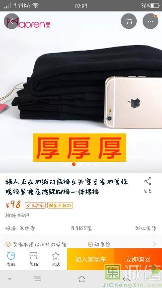 买的一条打底裤,深灰色的。黑色的打底裤已经有很多条了所以换了一种颜色。没有加绒很薄,穿的时候里面得穿一条保暖裤,但是质量...
