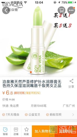 唇膏一支,冬天来了嘴唇总是干燥,好多死皮很讨厌,擦口红都好麻烦,点都不好看了。所以买了和室友一人买了一支唇膏。芦荟的,平...