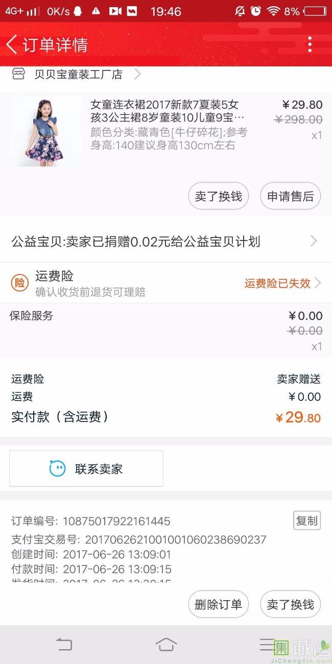 帮阿姨家的小孩买的童装收获了十天不到。她告诉我裙子飘带是坏的,质量比较差。没穿多久就破开了一个小洞,店家也不理不睬。服务...