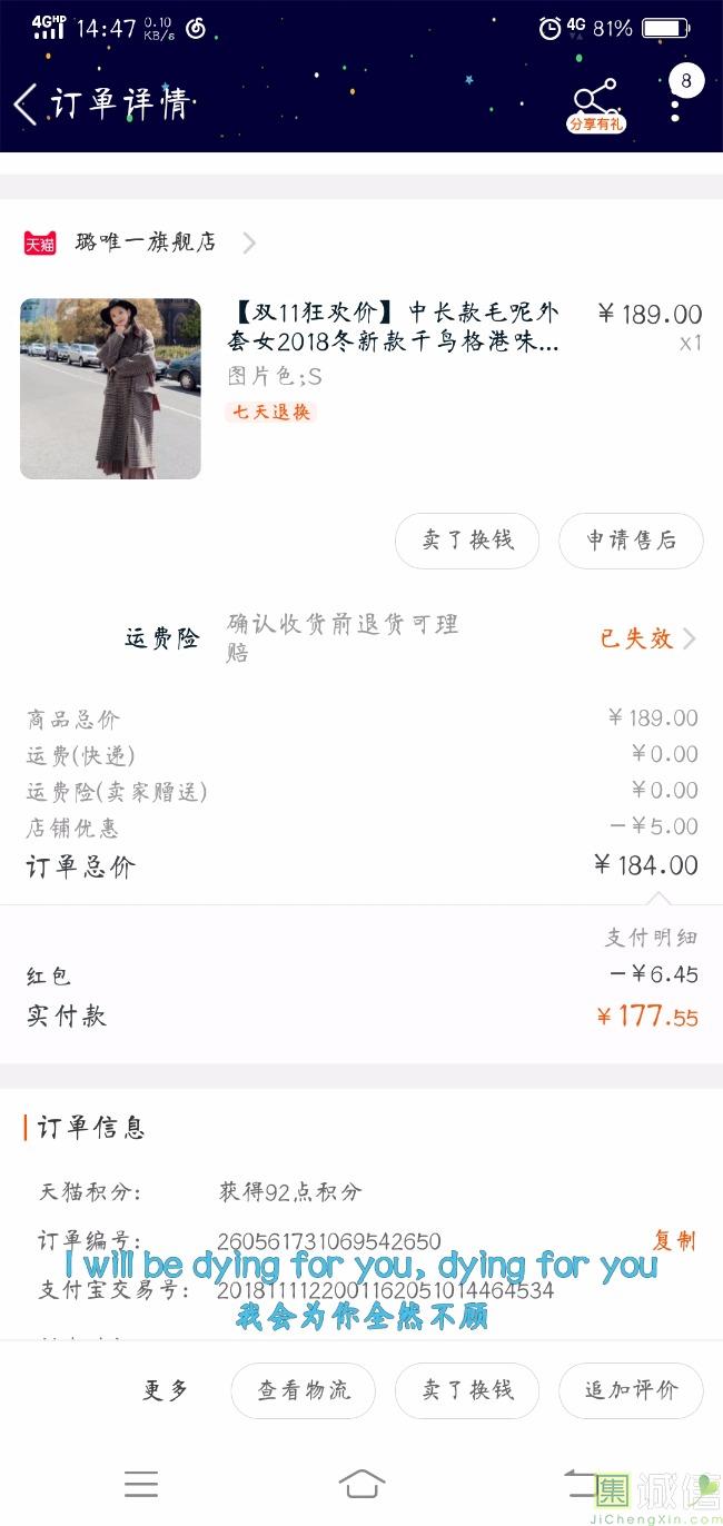 很喜欢这件大衣,等了好久了,千鸟格样式的,前些天一直穿着,很好看,超级好看哦,下次再来买这家店的。