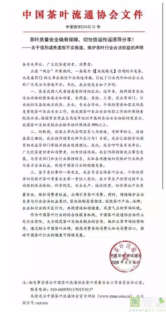 近期有网络传言将2012年茶叶农药残留报告引发的媒体报道以及2013年央视二套播出的“信阳茶叶农药残留调查”等内容拼凑在...