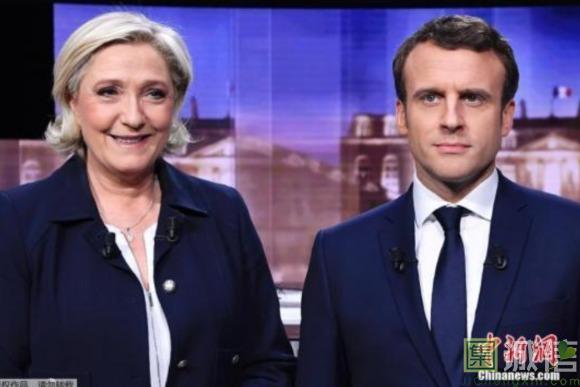 当地时间5月3日,法国大选第二轮投票在即,两位总统候选人马克龙和勒庞在拉普莱纳圣德尼开展选举前的电视辩论。 中新网5月8...
